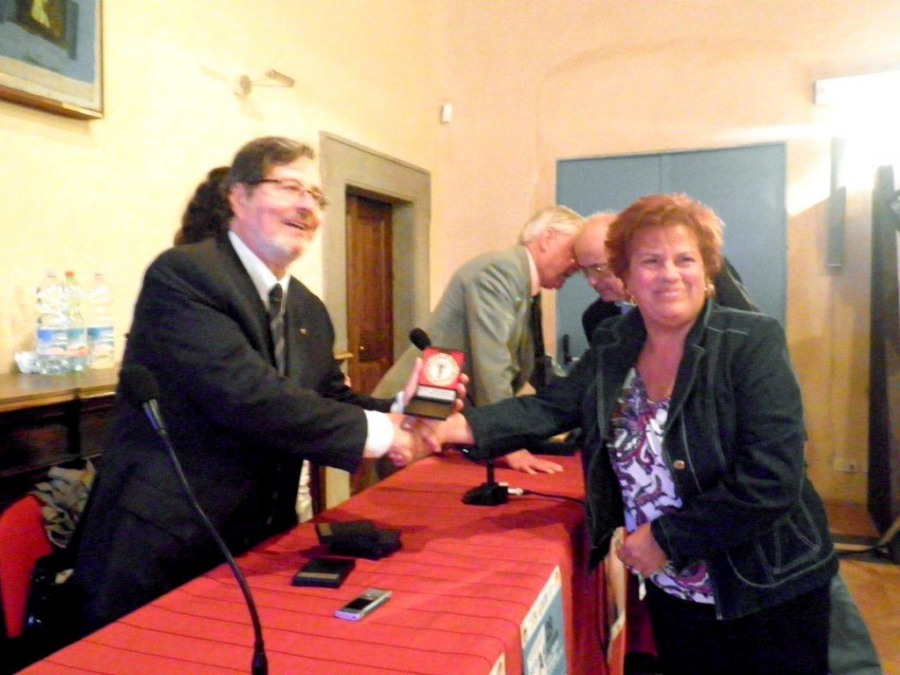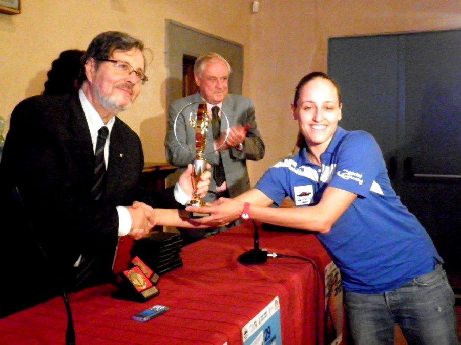 La Sig.ra Patrizia Ceprini riceve il premio per conto della Società Ceprini Sponsor della squadra ”AZZURRA”