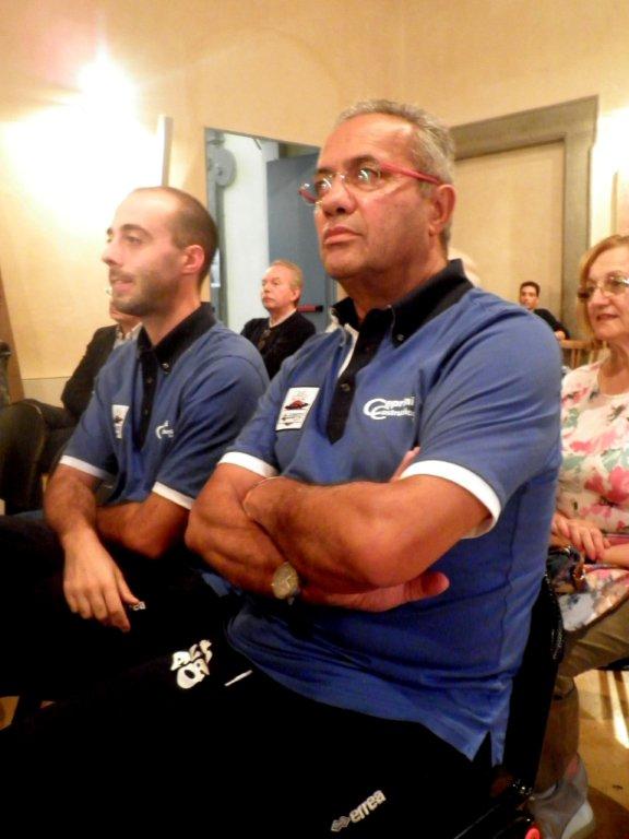 Il Sig. Angelo Bondi, allenatore di ”AZZURRA”, con accanto un suo collaboratore.