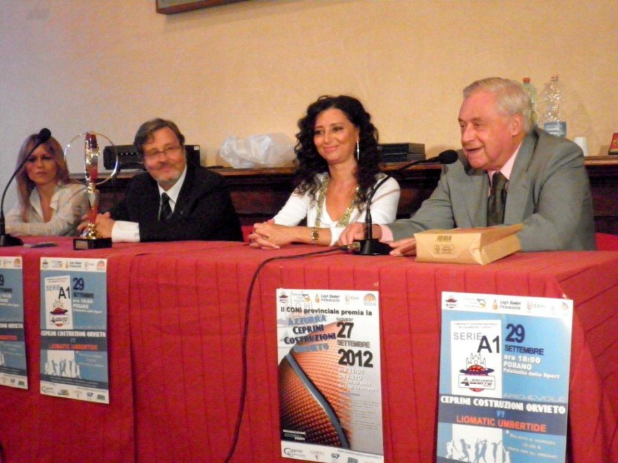 Il Premio del CONI alla Società sportiva ”AZZURRA CEPRINI ORVIETO” e l’avvocato Massimo Carignani, presidente del CONI