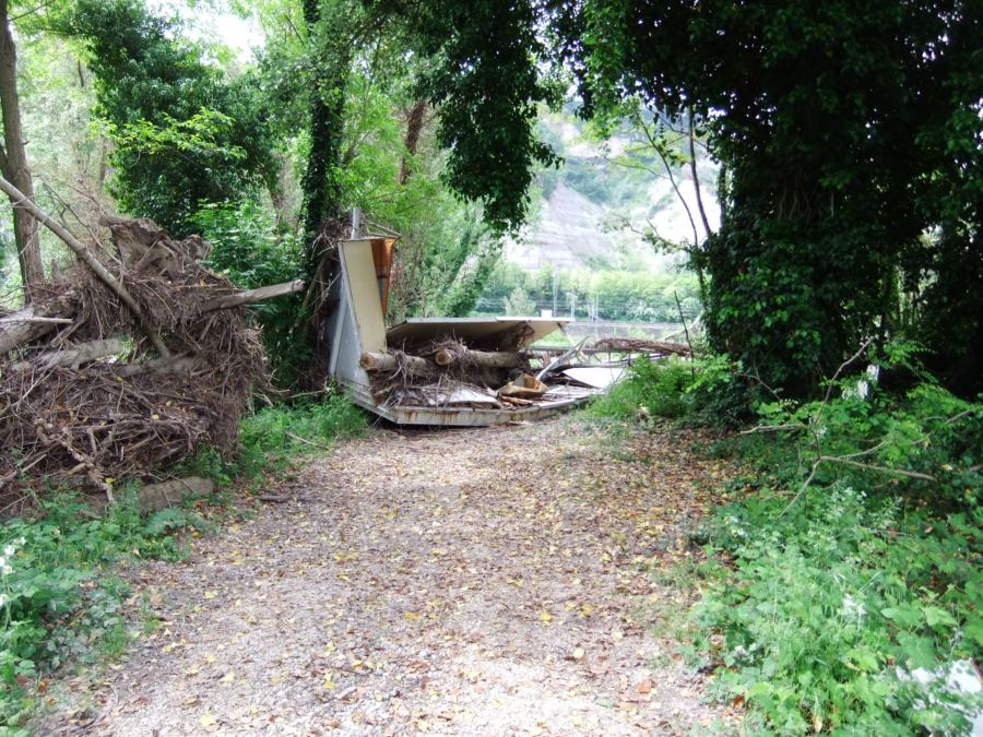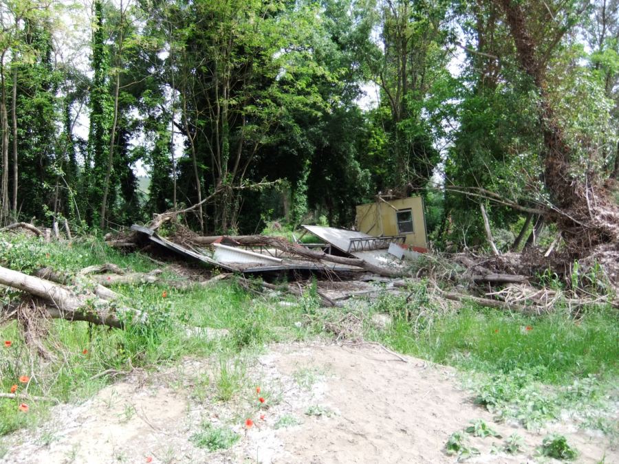 La situazione attuale è la seguente, così come in parte si vede dalle foto. La baracca di cantiere in prossimità degli scavi è stata scagliata dalla forza delle acque a tappare, con i suoi elementi sfasciati, la strada di accesso. L’area è stata ricoperta da uno spessore variabile di sedimenti sabbioso limosi che ne cancellano in parte il rilievo. La vegetazione, non più sotto controllo, complice anche una stagione particolarmente piovosa, sta reinvadendo tutto.