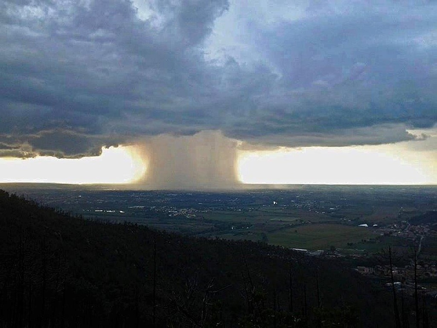 Questa immagine straordinaria, ripresa il 8 ottobre 2013 a Pisa, mostra il fenomeno della “bomba d’acqua”, cioè un fenomeno che si sta verificando frequentemente a causa del cambiamento climatico con relativo riscaldamento dell’atmosfera.