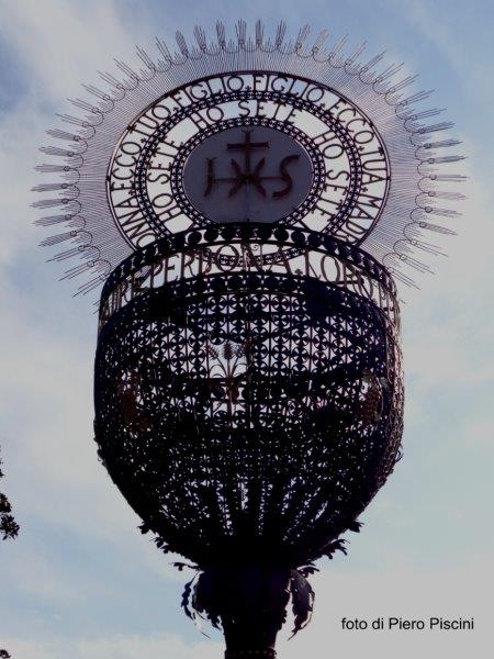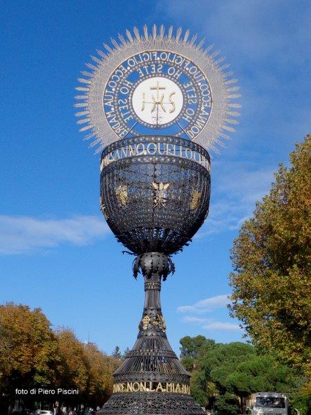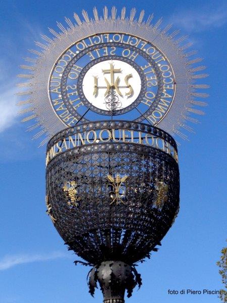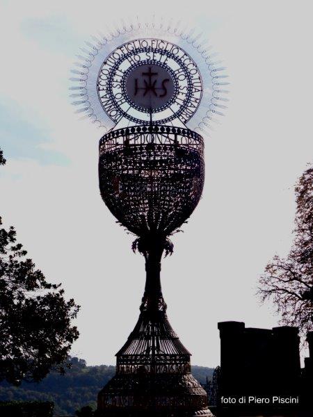 Il calice proveniente da Bolsena accoglierà turisti e pellegrini a piazza Cahen a indicare che la città è in festa e che questa è la città dove è stata emanata la Bolla Transiturus ed è conservato il Sacro Corporale del miracolo di Bolsena.