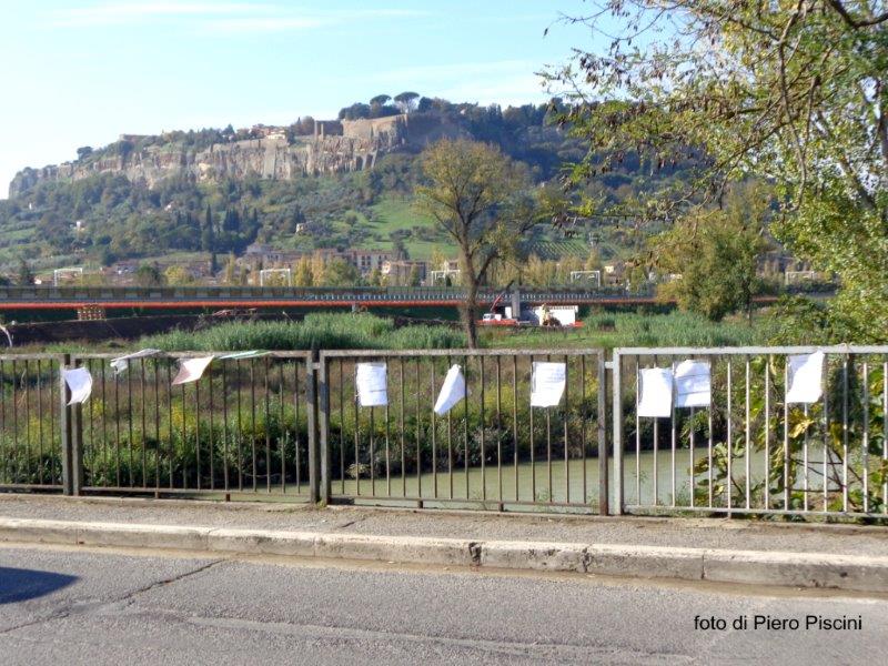 Erano state tolte il 12 novembre perché creavano disagi al traffico. Dopo un vivace polemica, oggi sono state di nuovo esposte sul ponte dell’adunata a cura dell’associazione Val di Paglia bene comune.