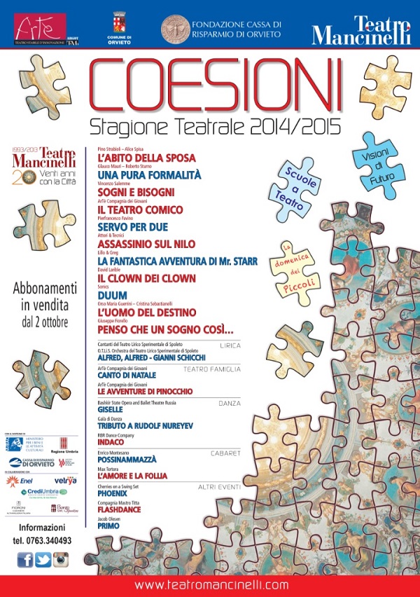 Forte del grande successo riscosso nelle passate Stagioni dalla formula dell’abbonamento a scelta, per il 2014-2015 il Teatro Mancinelli permette agli abbonati di comporre la propria personale programmazione.