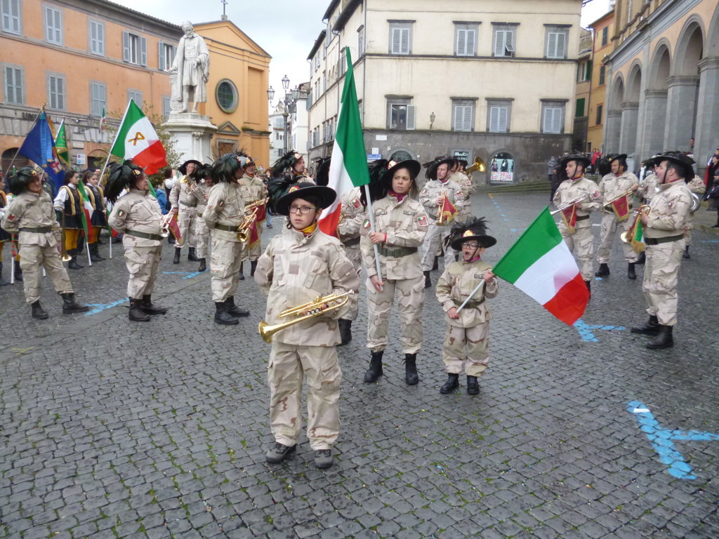 Il corteo è partito da piazza del Duomo in un tripudio tricolore accompagnato dalla Fanfara dei Bersaglieri di Torre Alfina e dalle sbandieratrici del Gruppo Storico Musicale Città di Viterbo, che si sono esibiti, tra gli applausi scroscianti della popolazione, in piazza Girolamo Fabrizio da dove sono partiti 200 palloncini che hanno colorato il cielo di tricolore. Successivamente, in piazza della Costituente è stata deposta una corona d’alloro al monumento ai caduti.
