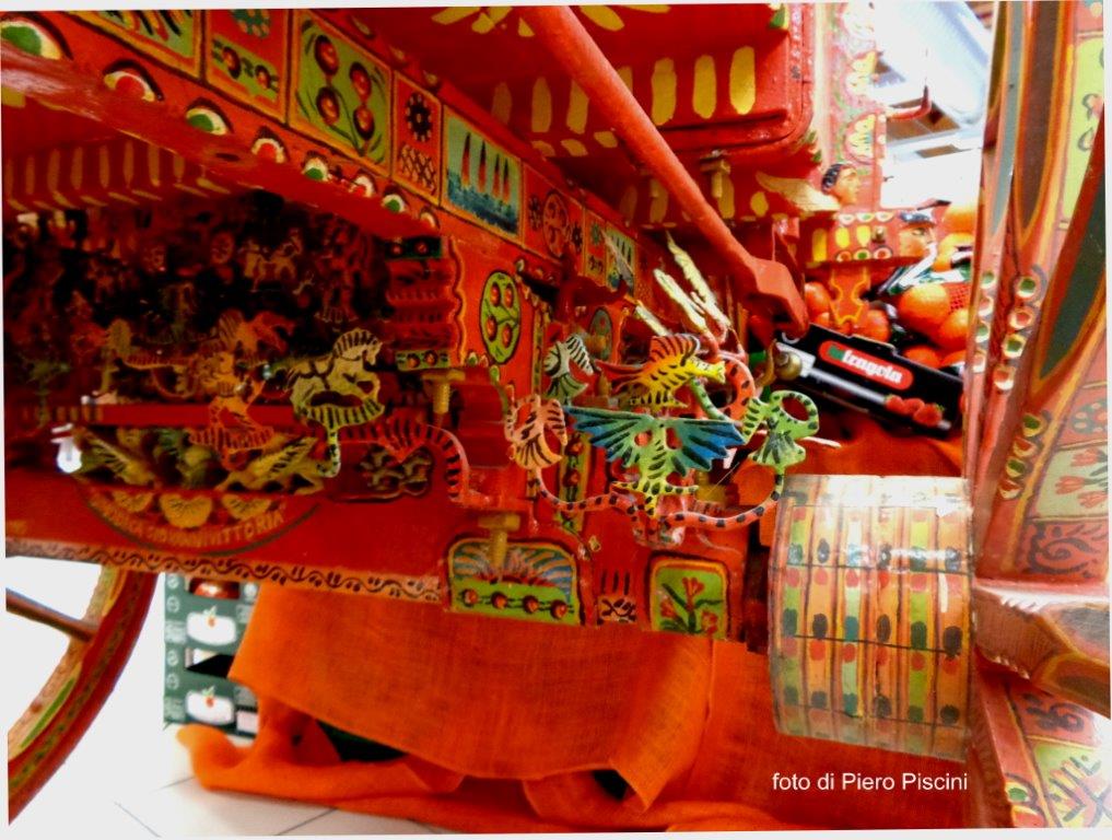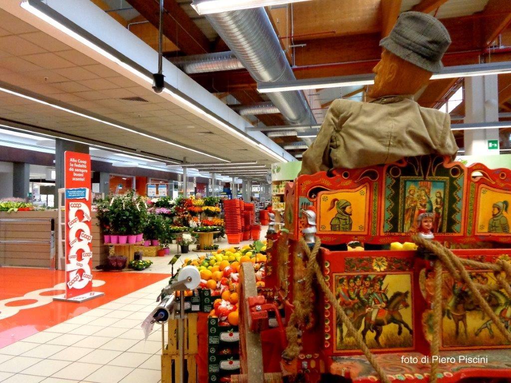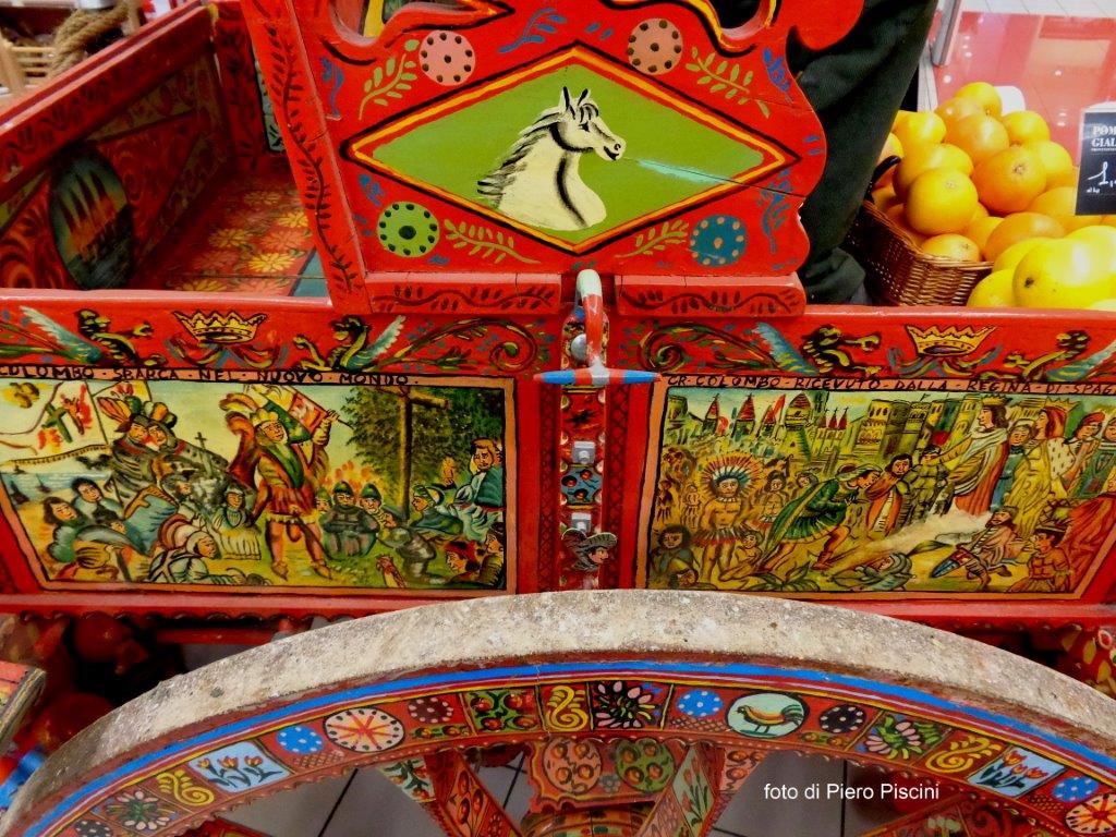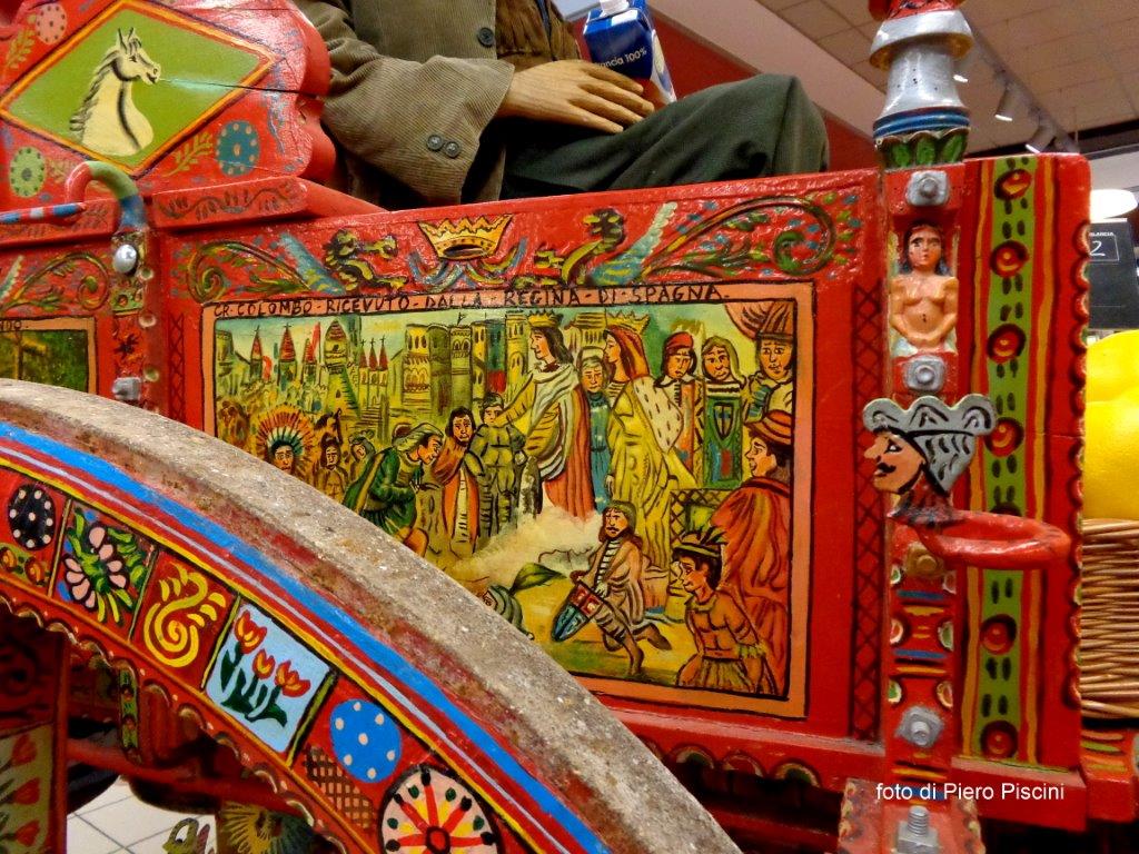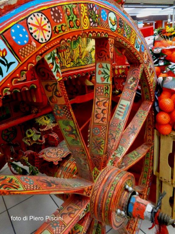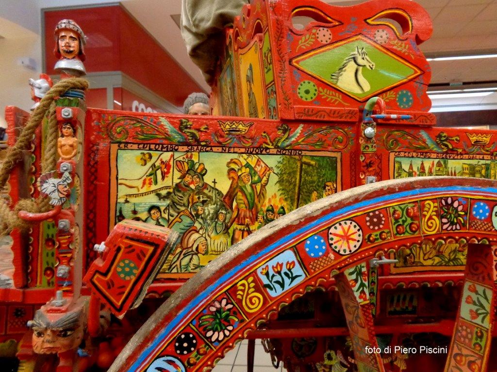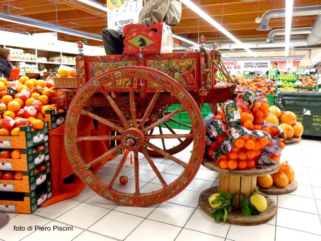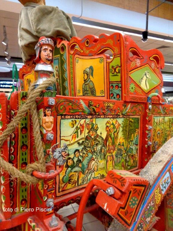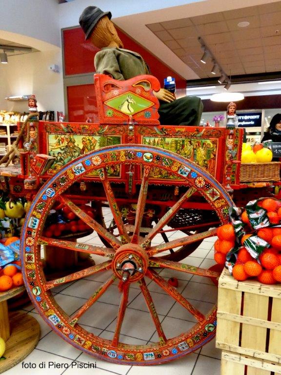 Un bellissimo e originale carretto siciliano in mostra alla COOP della ”Porta di Orvieto”
