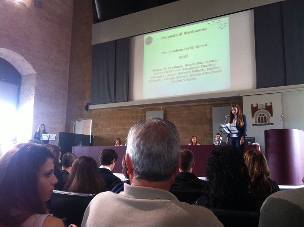 La giornata è iniziata con il saluto del Vice-sindaco, Cristina Croce, del Dirigente scolastico Elvira Busà e del dott. Andrea Stagni membro del Direttivo del PEG E subito dopo è stata aperta l’Assemblea. Ogni Topic è stato introdotto da letture scelte e interpretate con grande intensità da studenti , guidati da Elisabetta Spallaccia. Il dibattito si è svolto attraverso discorsi di difesa, attacco e numerosissime domande che alla fine hanno portato alla votazione della risoluzione. Solo due sono state quelle approvate cioè quella sui diritti e tratta degli esseri umani e quella sulla cultura ed educazione. L’Assemblea Generale si è conclusa con la premiazione dei ragazzi. Un premio è andato alla migliore delegazione che è stata quella proveniente dal Liceo Leonardo da Vinci di Acquapendente. Gli altri premi invece sono stati consegnati ai migliori delegati: Ludovico Ermini e Nicola Stocchetti per il Liceo Scientifico e Tecnico Majorana Maitani di Orvieto; Alexandra Ganev, Elvira Marchetti e Chiara Lattuada per il Liceo Classico F.A. Gualterio di Orvieto.