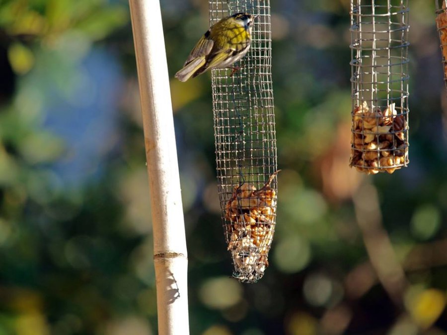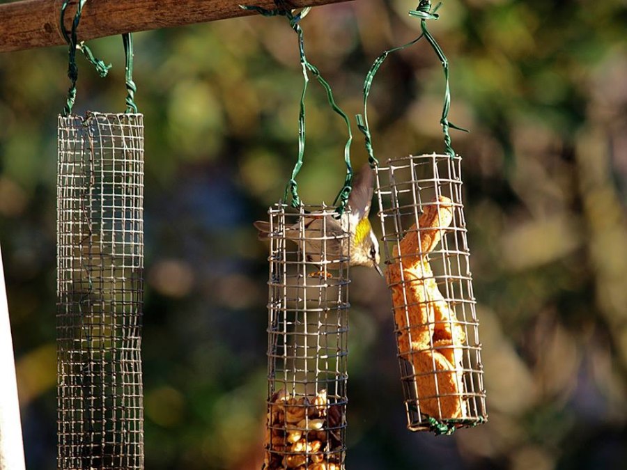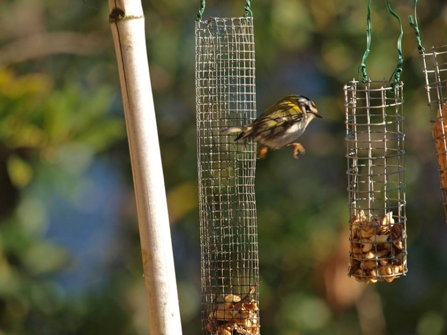 Nei mesi di febbraio e marzo è comparso un fiorrancino:normalmente ha mangiato i residui delle noci e dei frollini all’uovo che alimentavano lucherini, cardellini, cinciarelle, cinciallegre, picchio muratore…..poi, un giorno, si è attaccato ai cilindri con il cibo e si è fatto riprendere. Pesa solo 5 grammi ed è confidentissimo!!!