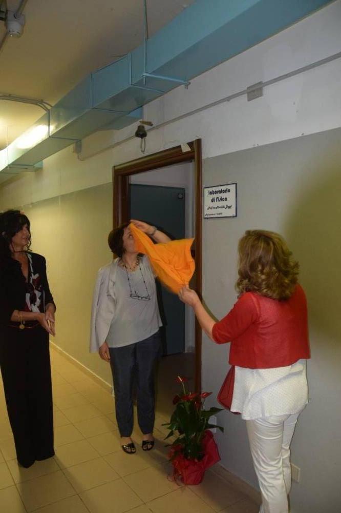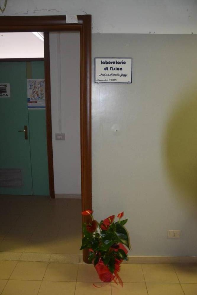 ACQUAPENDENTE – Alla presenza del marito Fernando Barberini (fotografia 1), è stato dedicato alla compianta Professoressa Mariella Boggi il laboratorio di Fisica (fotografia 3). A scoprire la targa la Dirigente Luciana Billi e le professoresse grandissime amiche di Mariella Marta Ronca e Serenella Chierici (fotografia 2). La stessa Chierici (fotografia 4) ha letto un commovente ricordo.