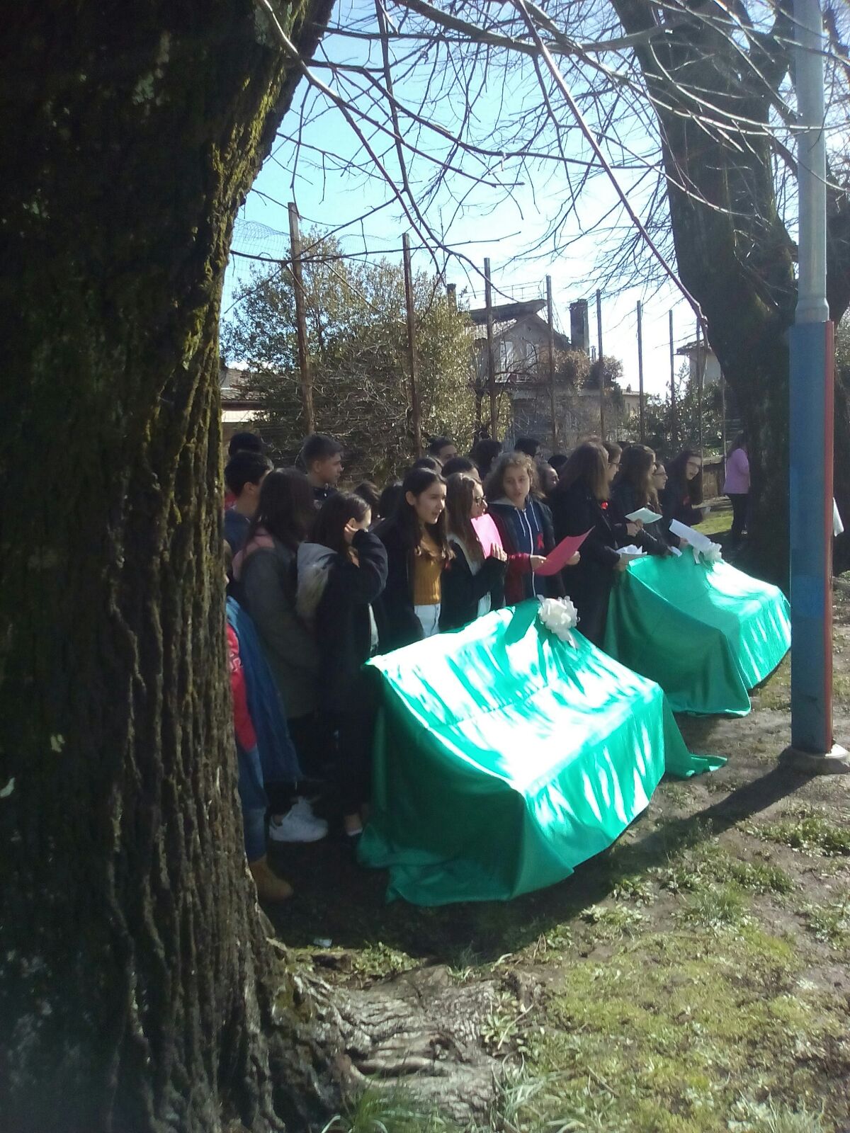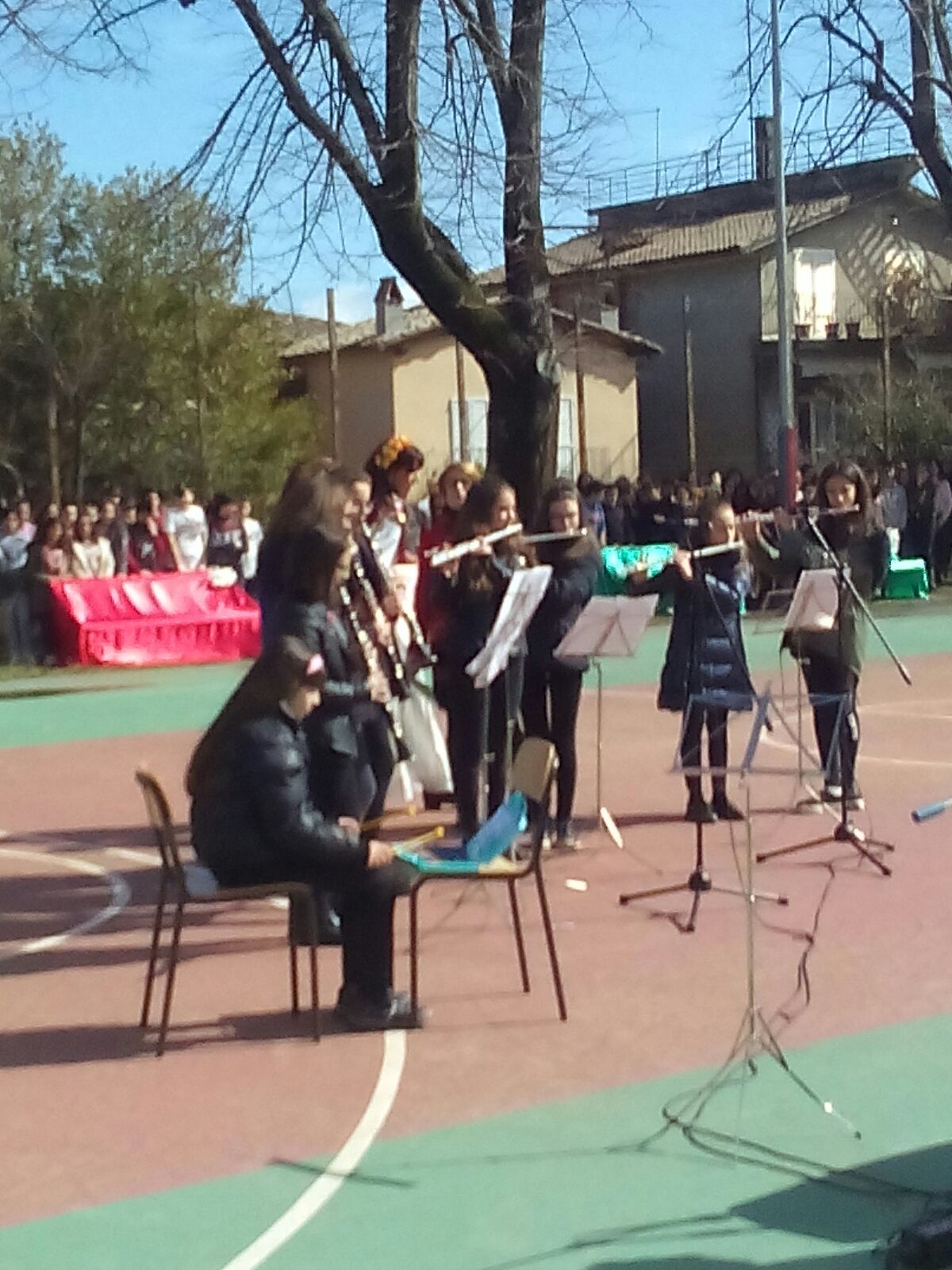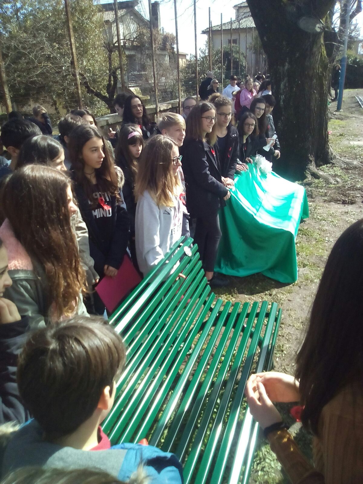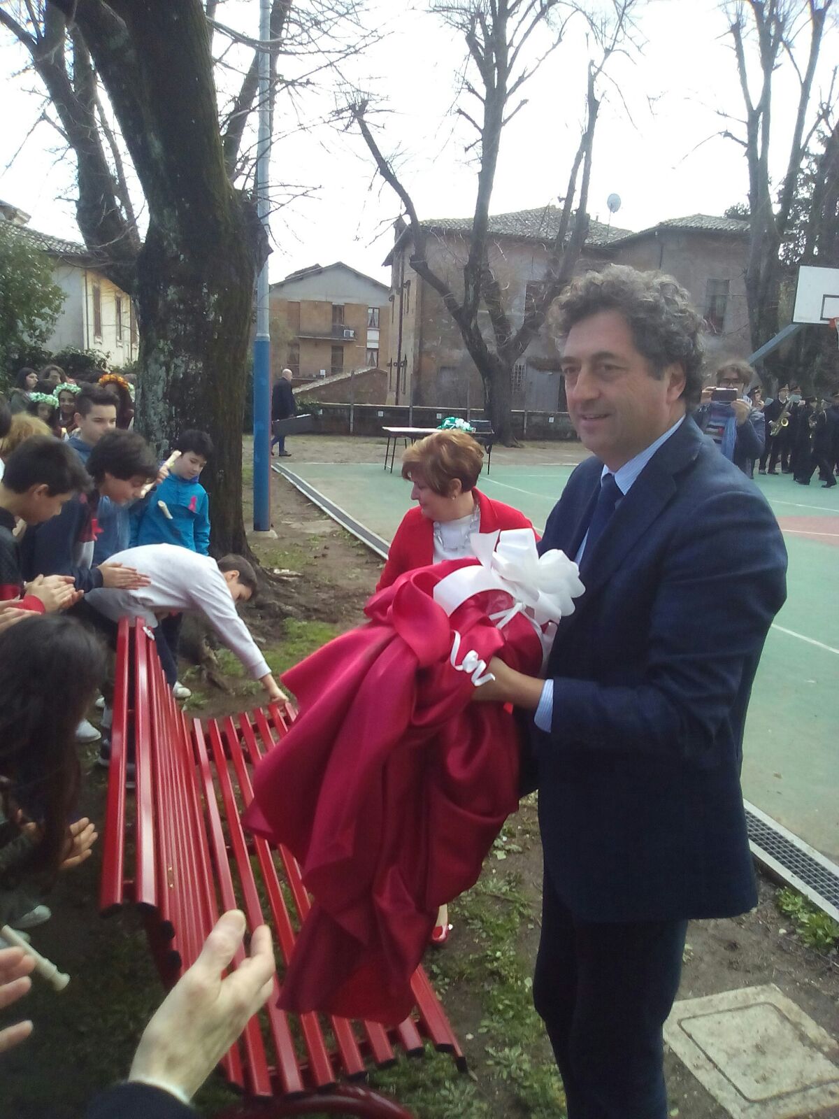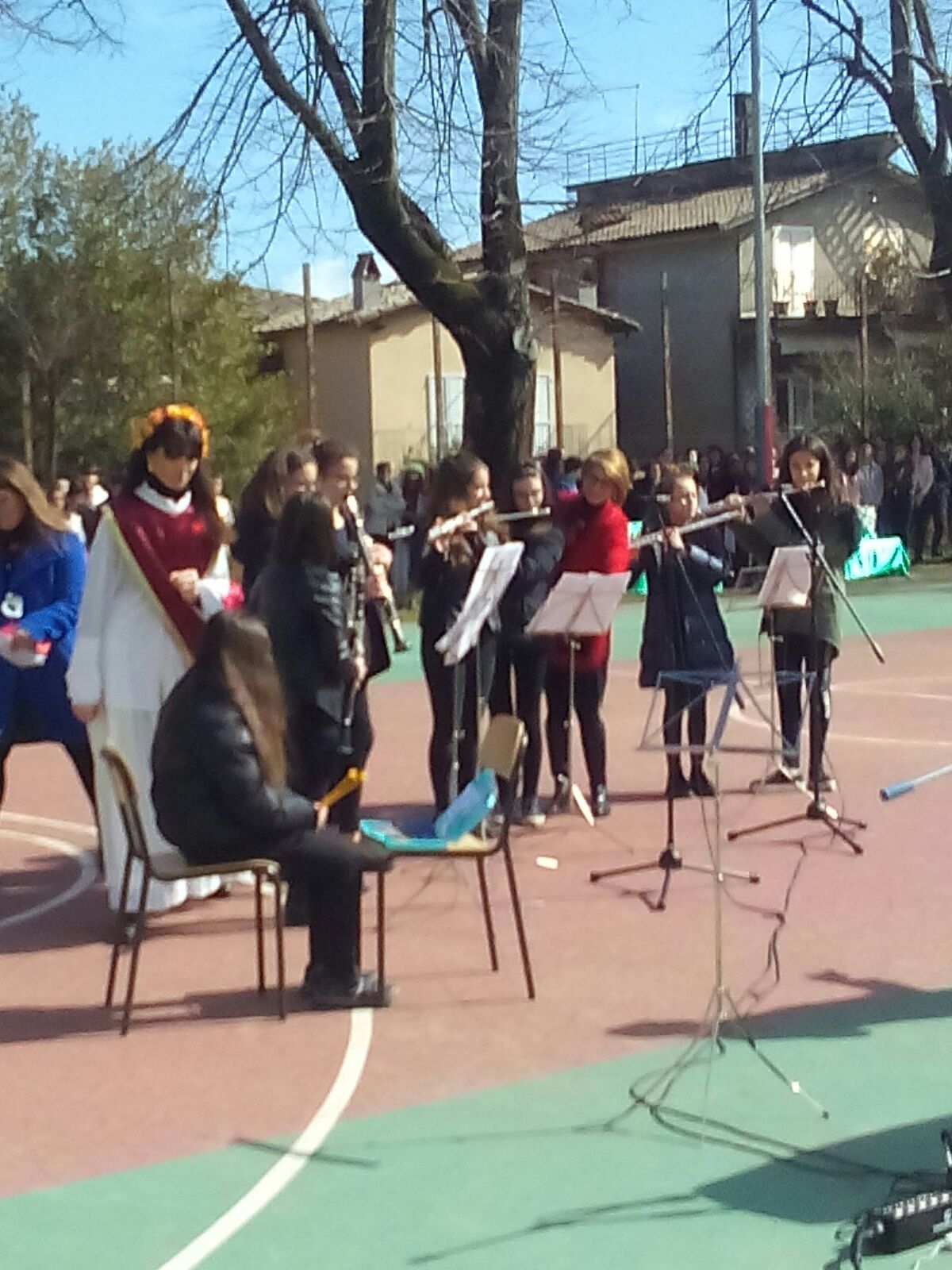 Prima di arrivare al momento più emozionante dell’intera mattinata, ovvero all’inaugurazione delle panchine, è stato eseguito dalla seconda F una danza medioevale arrangiata da Angelo Branduardi dal titolo Donna ti voglio cantare. Una ballata sentimentale e forte per esaltare e proteggere la forte fragilità della donna. Durante la mattinata sono intervenuti Reno Montanucci, Gianni Marchesini, l’Orchesta Filarmonica del Mancinelli con il maestro Lamberto Ladi e Fiorangelo Silvestri che ha piantato una mimosa nel giardino della scuola, pianta gentilmente fornita dal vivaio di Marco Mandini.