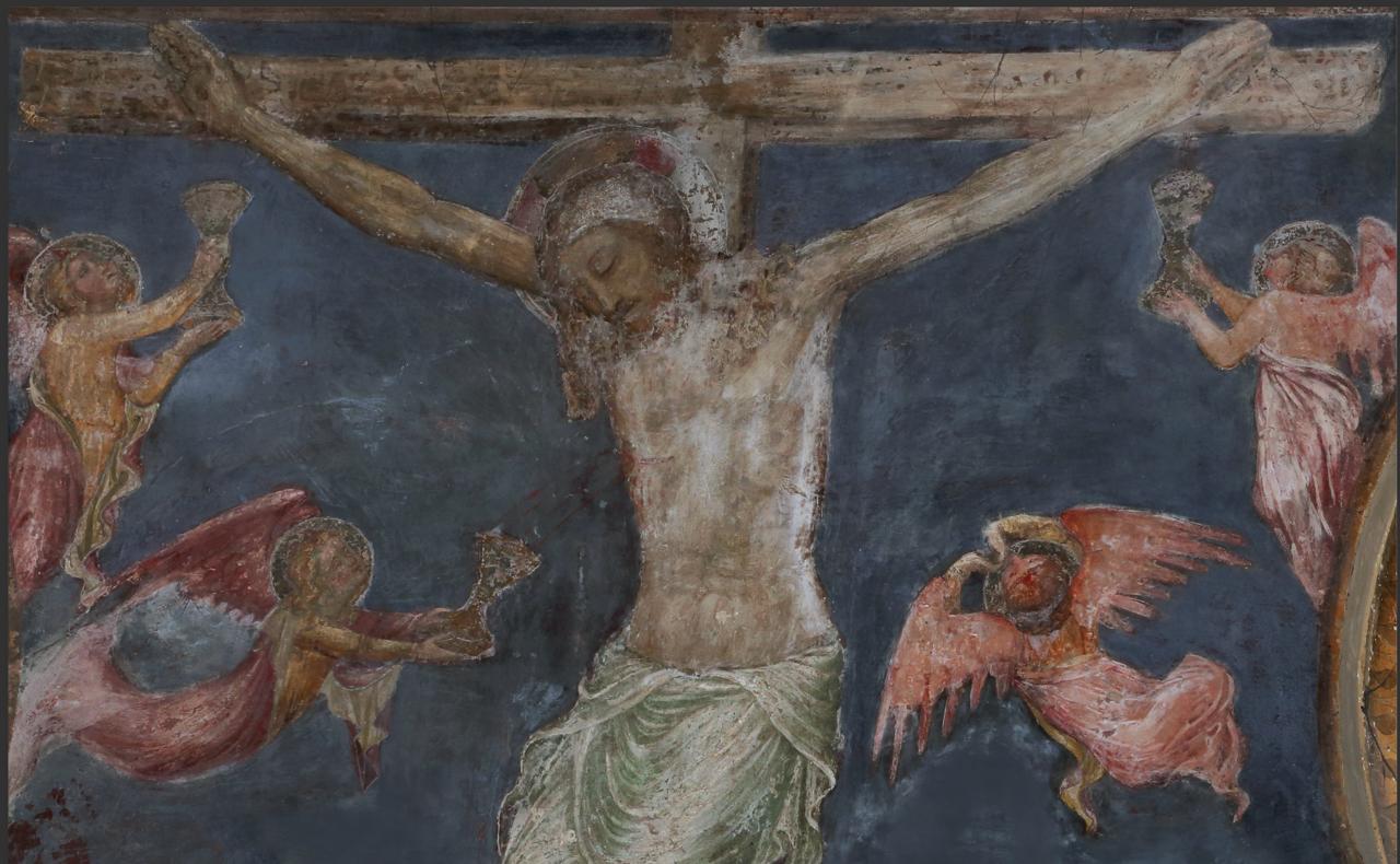 Chi entrava nella cappella e contemplava la scena della Deposizione (purtroppo oggi quasi del tutto nascosta dietro una statua settecentesca dell’Arcangelo Michele), si trovava a compiangere il corpo di Cristo, insieme a Maria, la Maddalena, il discepolo Giovanni e lo stesso Nicodemo. E nello stesso tempo immedesimarsi con Giuseppe d’Arimatea, ritratto sulla destra, come in disparte, mentre stringe tra le mani il suo vaso. Egli -dichiarava san Giovanni Crisostomo(344-407) in una delle sue lettere- si acquistò il merito di aver ottenuto coraggiosamente il corpo di Cristo, quando “perfino Pietro e Giovanni, che fu testimone oculare della morte di Gesù, non fece nulla di simile”